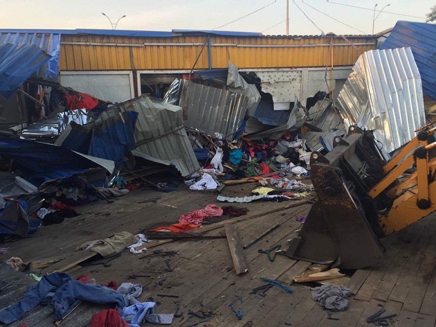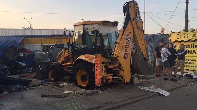 Инцидент произошел примерно в два часа ночи на рынке, расположенном по улице Киото. Неизвестные с помощью техники начали громить киоски. Они заявили, что действуют якобы по поручению Киевской городской администрации.