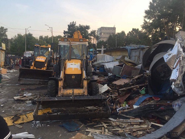 Владелица одного из киосков рассказала, что "погромщики" работали на бульдозерах, а имеющийся в магазинчиках товар якобы забрали с собой.
