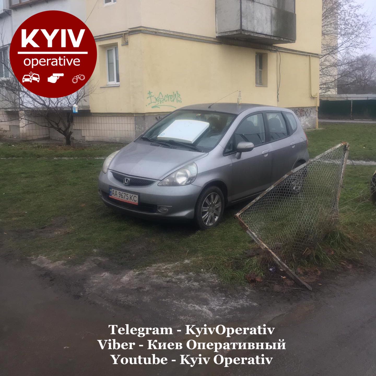 Авто на газоне около жилой многоэтажки заметили по адресу улица Полковая, 72. Владелец Honda с номерами AA9675KC не обратил внимание, что на это место машины ставить нельзя.
