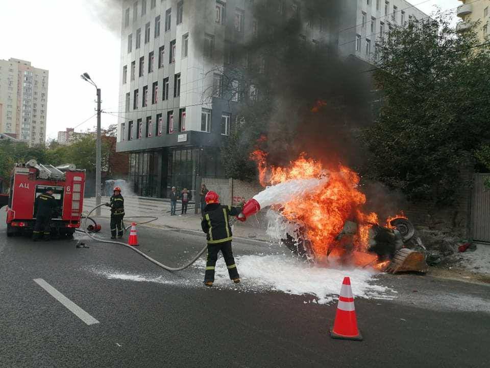 На Facebook-странице "ДТП. Киев" опубликовано видео с первых минут возгорания автомобиля, когда он только начал дымиться после аварии.