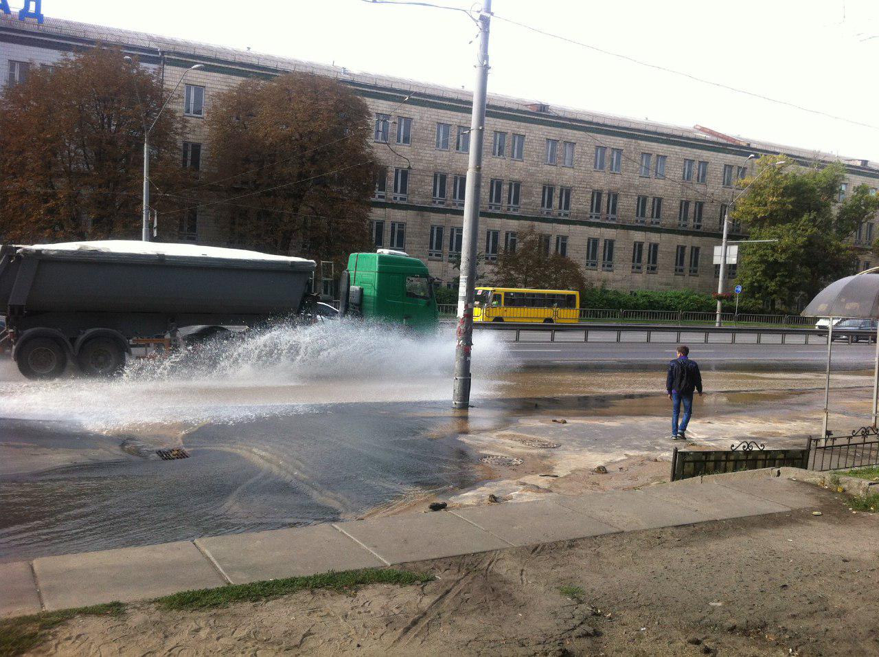 8 сентября в Киеве на углу улицы Гарматной и проспекта Победы произошла авария на водопроводной магистрали.