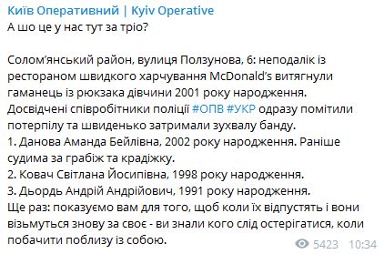 В Соломенском районе Киева, на улице Ползунова поймали банду воров, которые извлекали ценные вещи из карманов, рюкзаков жертв.