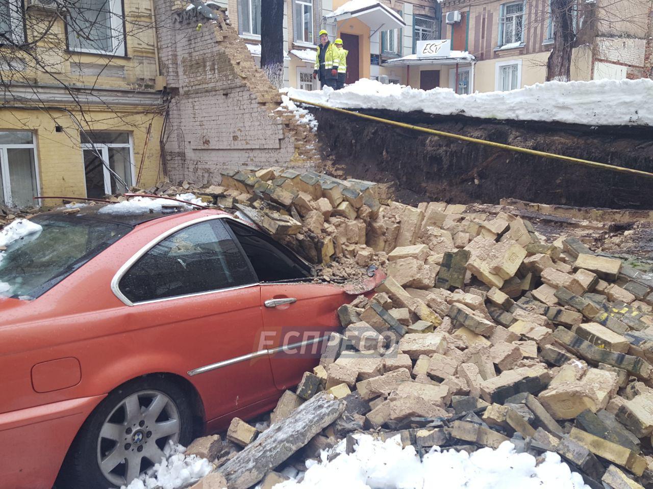 Стена, которая располагалась во дворе между домами с целью предотвращения смещения грунта, в результате падения повредила газовые трубы и силовые кабеля электроснабжения, а также рухнула прямо на два автомобиля: Lexus и BMW. Сильнее всего пострадал именно автомобиль BMW.