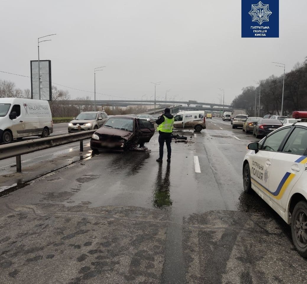 Уточняется, что в результате ДТП затруднено движение от моста Патона в направлении станции метро Выдубичи.