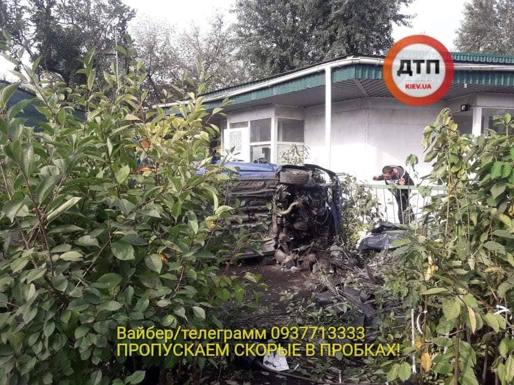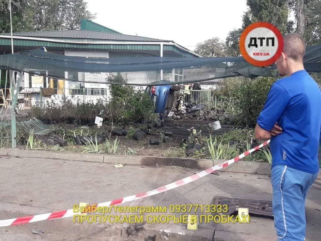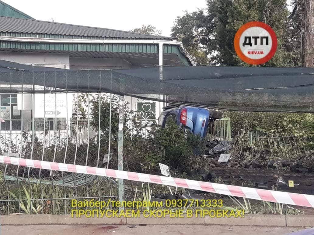 Согласно предварительной информации, пьяный водитель Chevrolet (AA1071CM) не справился с управлением своего авто и на большой скорости вылетел на тротуар, где в это время шла женщина. После столкновения с ней, авто пробило забор Садового Центра, пронеслось по его территории и опрокинулось на бок.