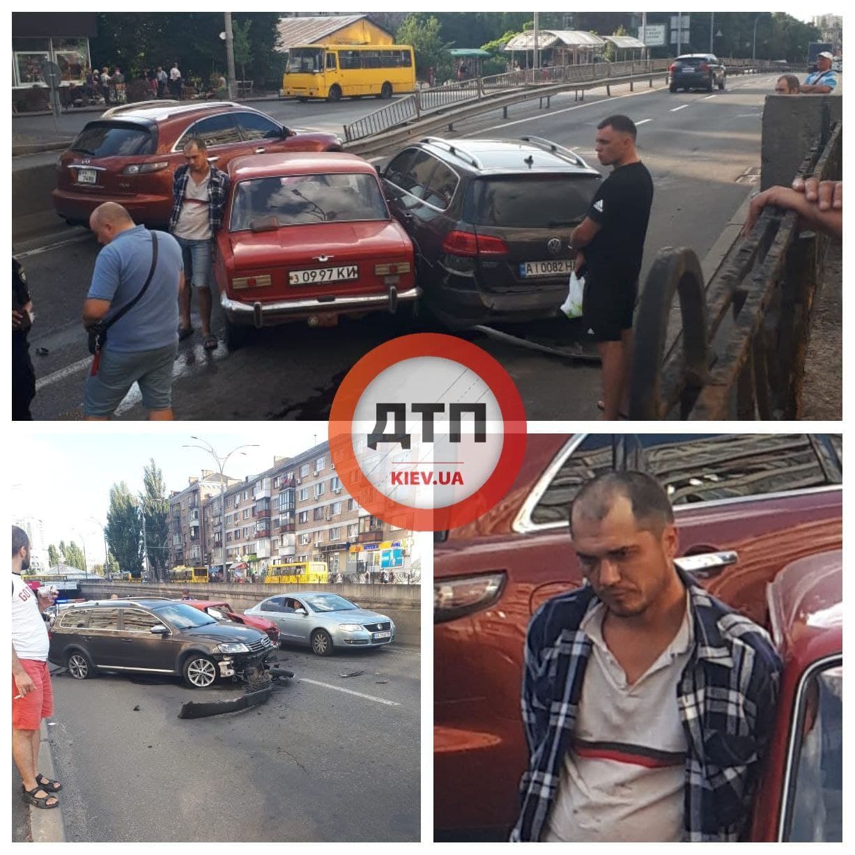 "Пьяный карколом в Киеве на Севастопольской площади: Чоколовский бульвар 6: на выезде из тоннеля пьяный водитель элитного седана ВАЗ протаранил бюджетный универсал Volkswagen", - говорится в сообщении.