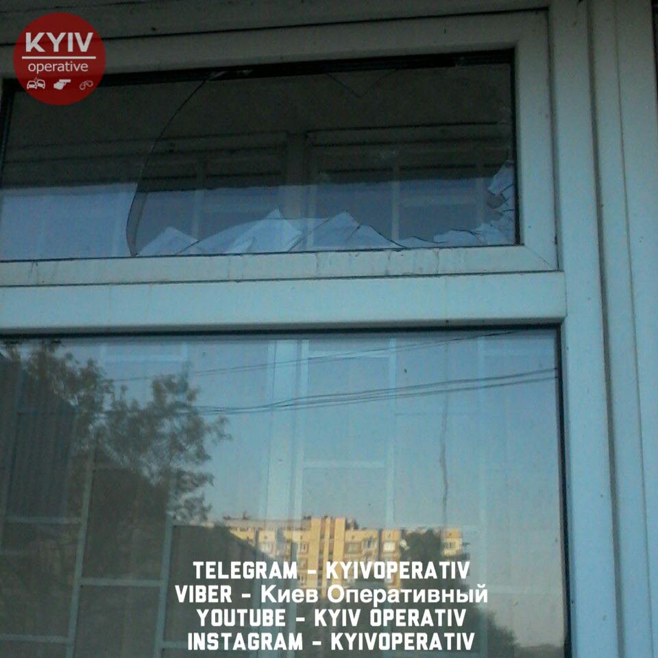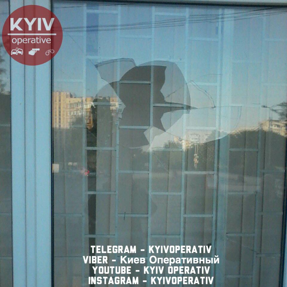 В Киеве неадекватный мужчина разбил оконное стекло в здании "Ощадбанка".