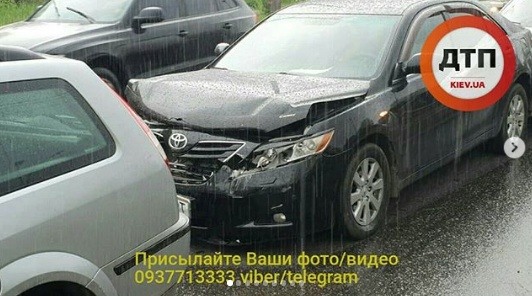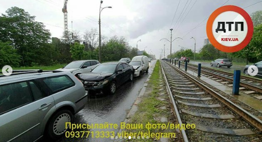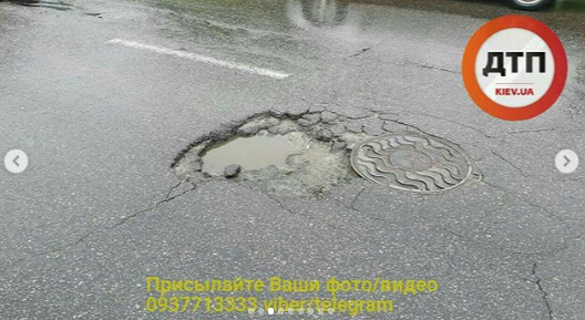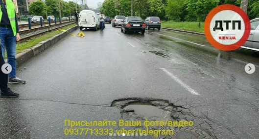 7 мая в Соломенском районе столицы произошла цепная авария из-за ямы на дороге.