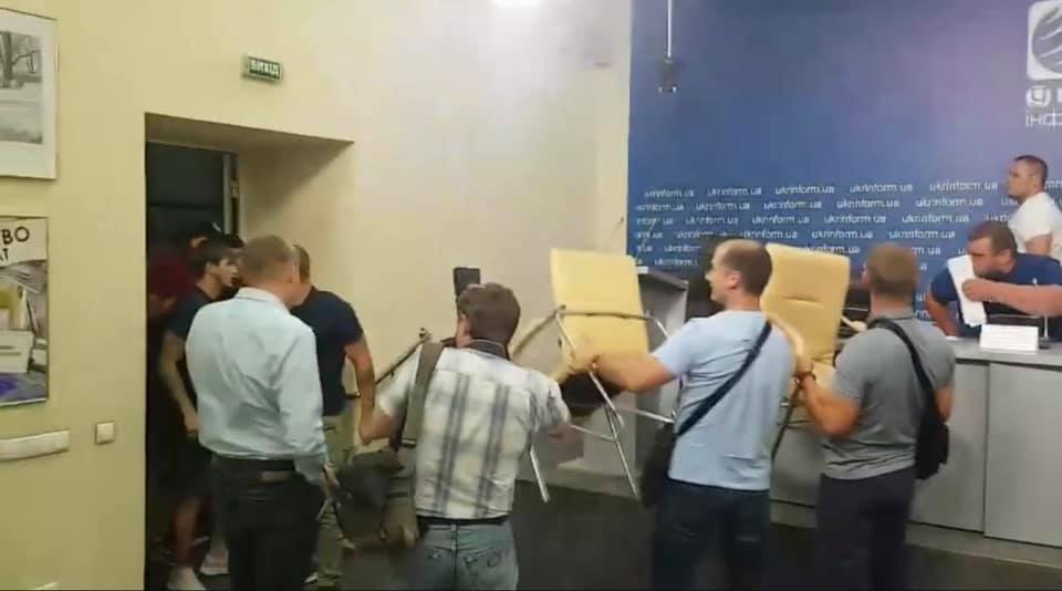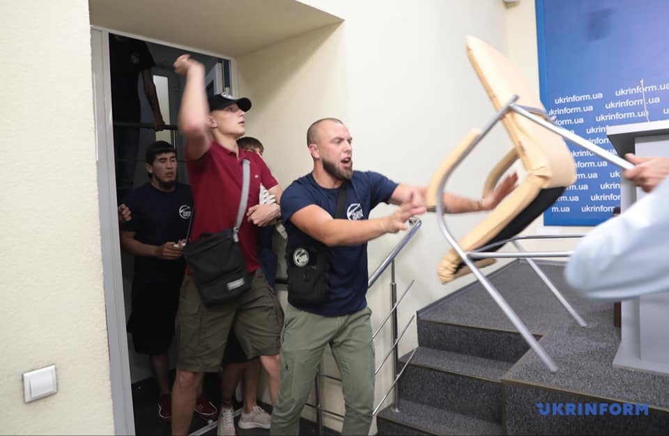 30 июля в государственное информационное агентство "Укринформ" ворвалась толпа мужчин, которые забросали яйцами присутствующих и разгромили пресс-центр.