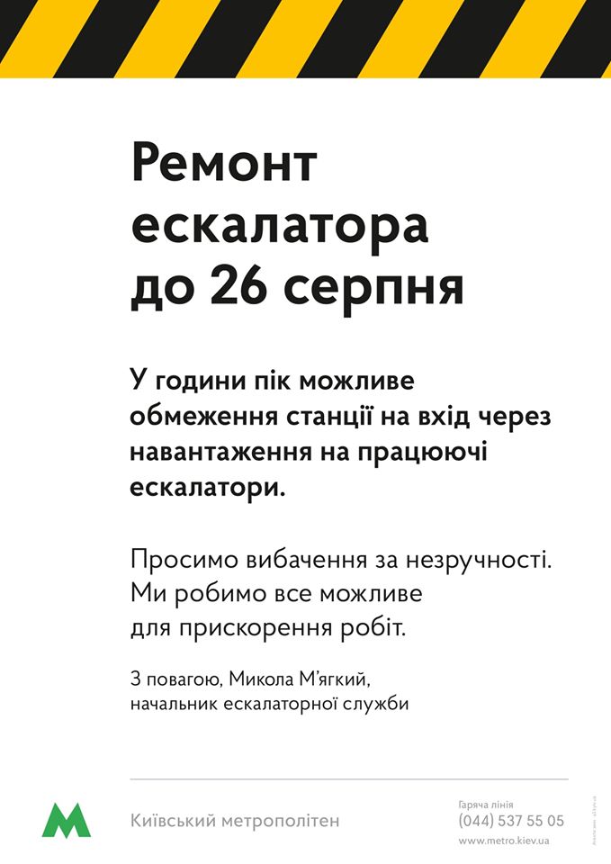 Об этом сообщает пресс-служба Киевского метрополитена в Facebook.
