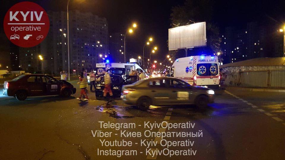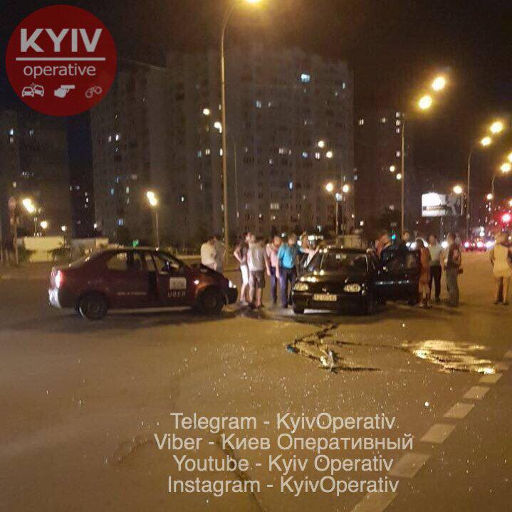 26 августа около 23:00 в районе Позняков на ул. Анны Ахматовой произошло ДТП с участием легкового автомобиля и такси.