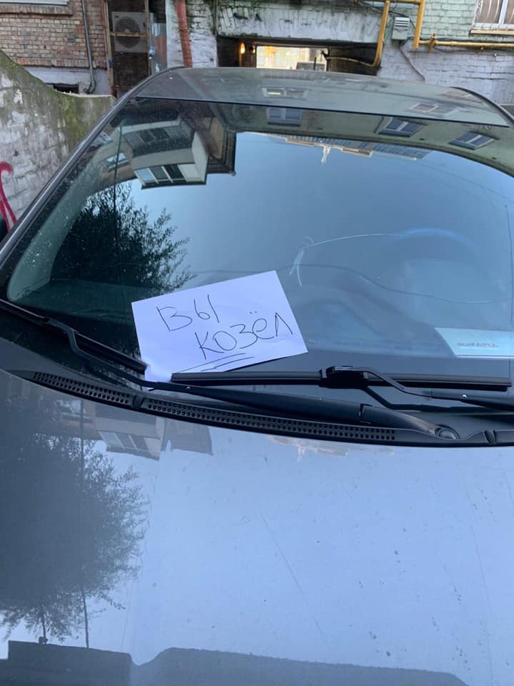 Кто-то из прохожих решил наказать водителя и оставил ему записку с текстом: "Вы козел".