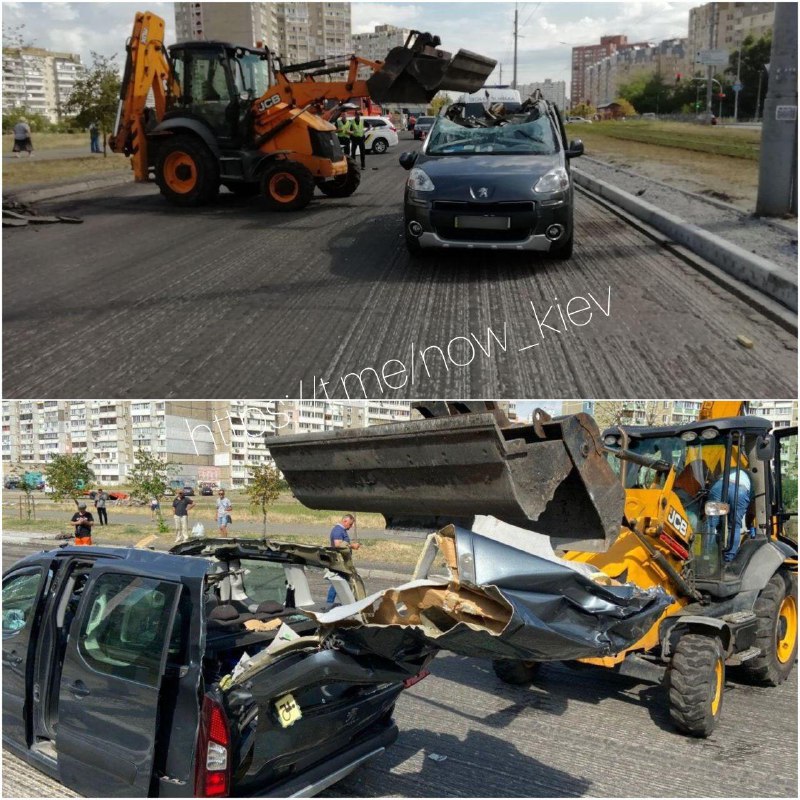 Сегодня, 10 августа, в Киеве в Дарницком районе трактор нечаянно разгромил легковой автомобиль.