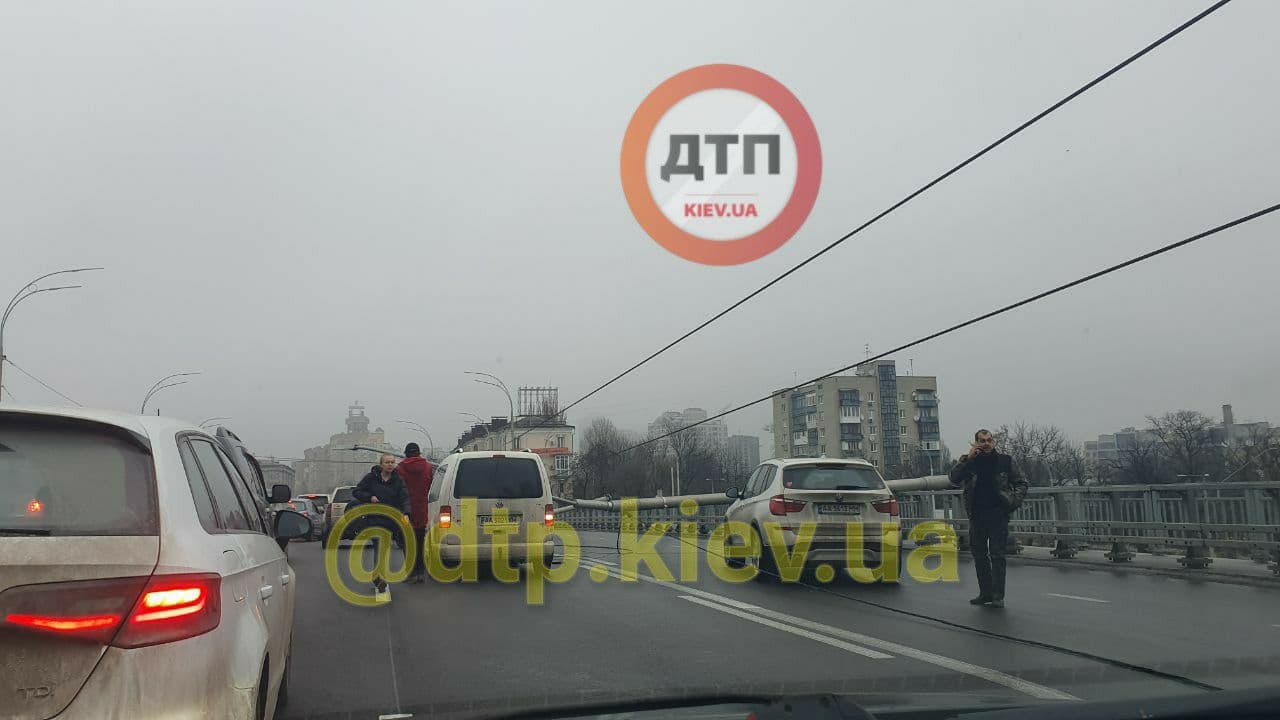 Очевидцы сообщают, что из-за этого инцидента на недавно отремонтированном мосту огромная пробка тянется от Севастопольской площади.