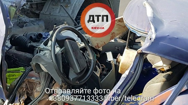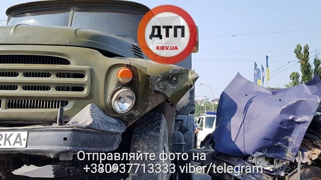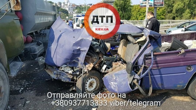 В Киеве на мосту Патона автомобиль марки "Москвич" пикап с арсеналом оружия в багажнике врезался в ЗИЛ.