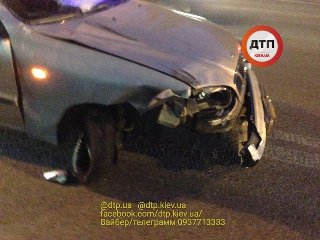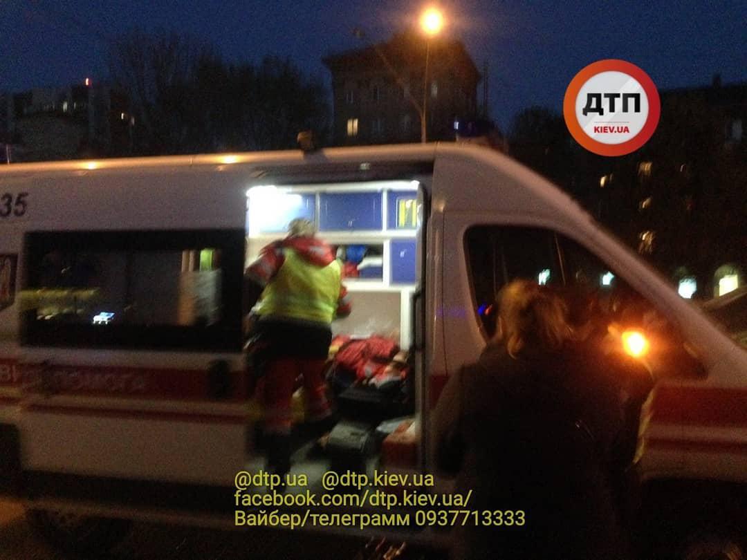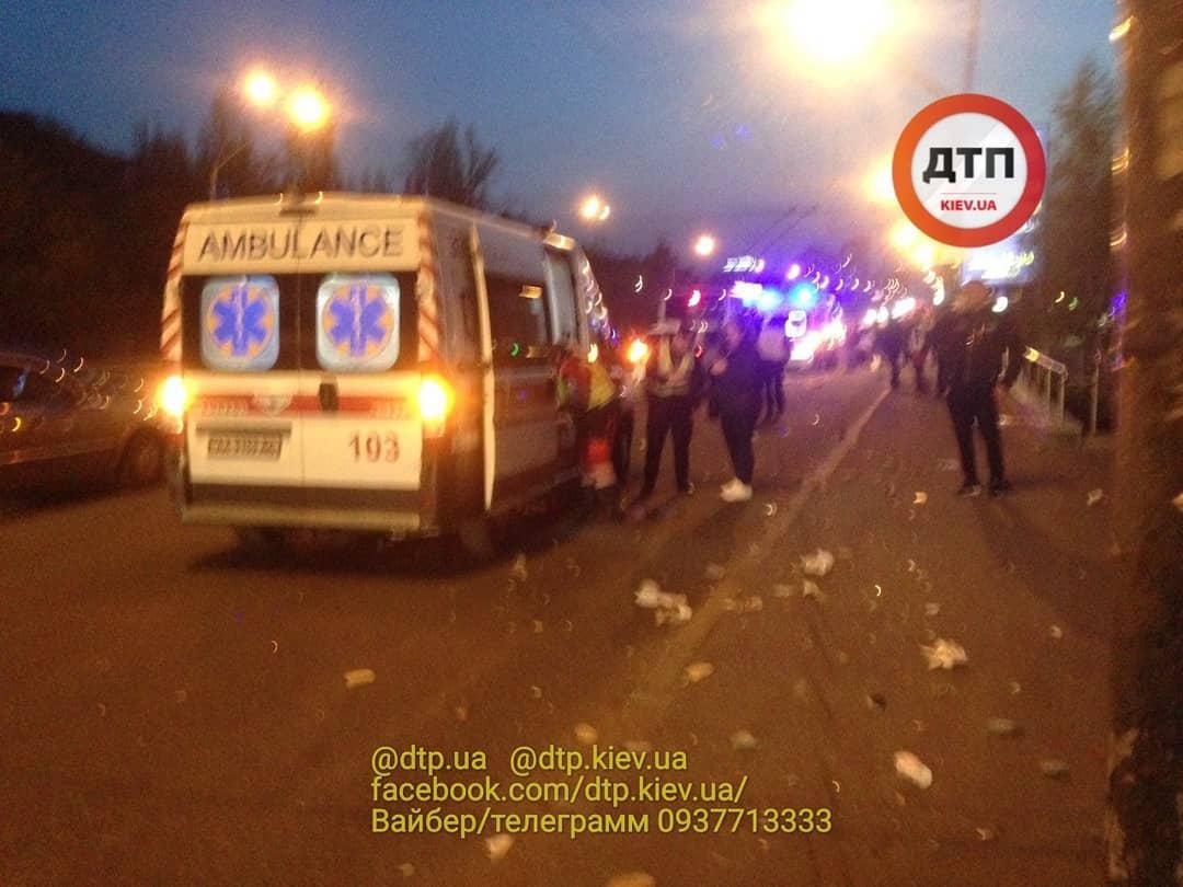 "Жуткое ДТП с пострадавшими в Киеве прямо сейчас на проспекте победы у метро Святошин: предварительно, водитель автомобиля на большой скорости вылетел на тротуар, сбил двух пешеходов и улетел обратно на дорогу. Остановился автомобиль уже без колес, оставил в