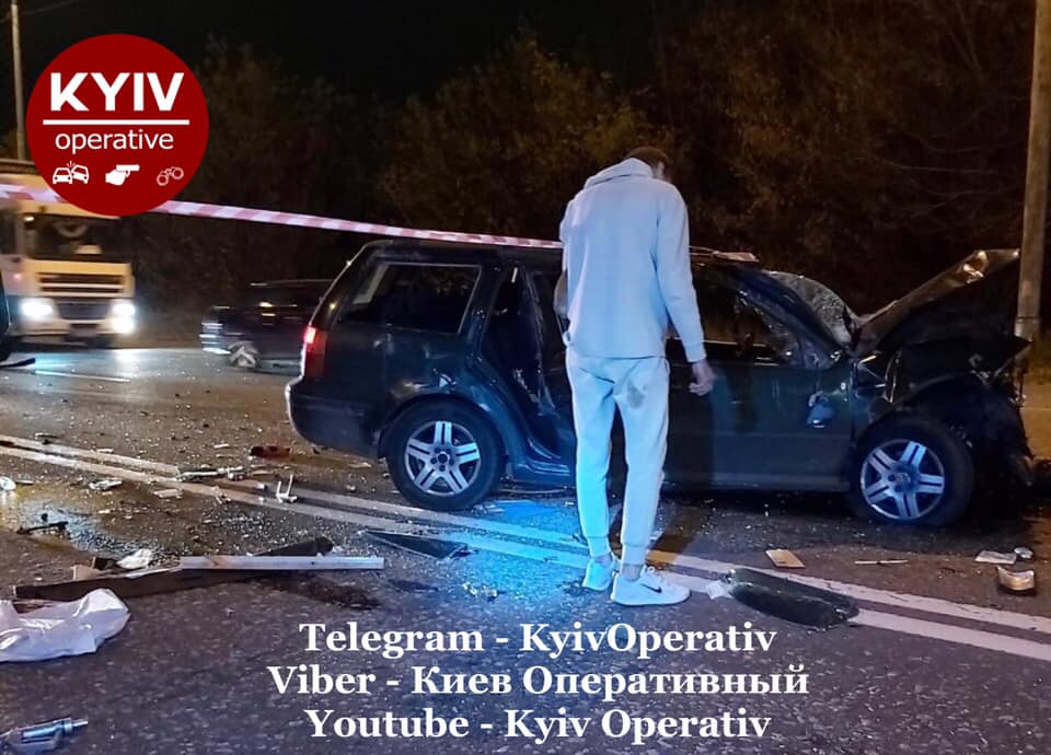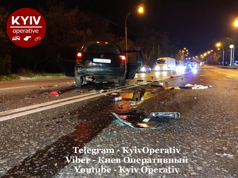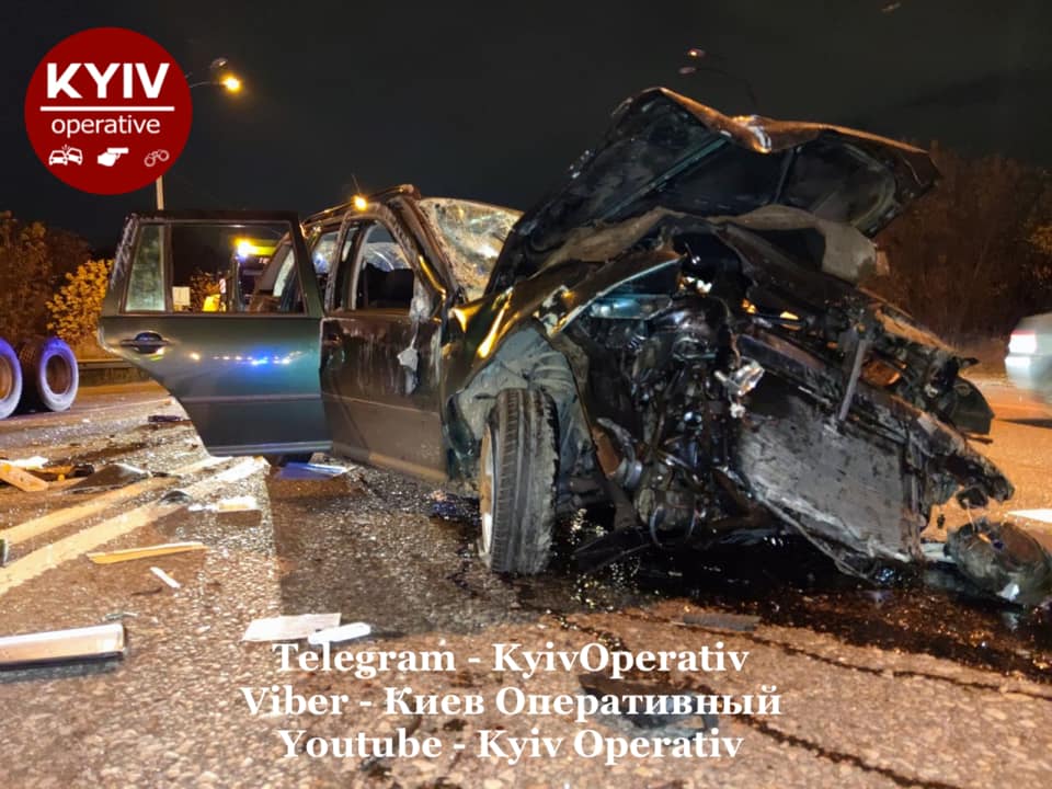 ДТП произошло на улице Заболотного. Там водитель Volkswagen с номерами AI0381AI въехал в грузовик Mack. От удара легковое авто начало крутить и бросать по всей дороге.