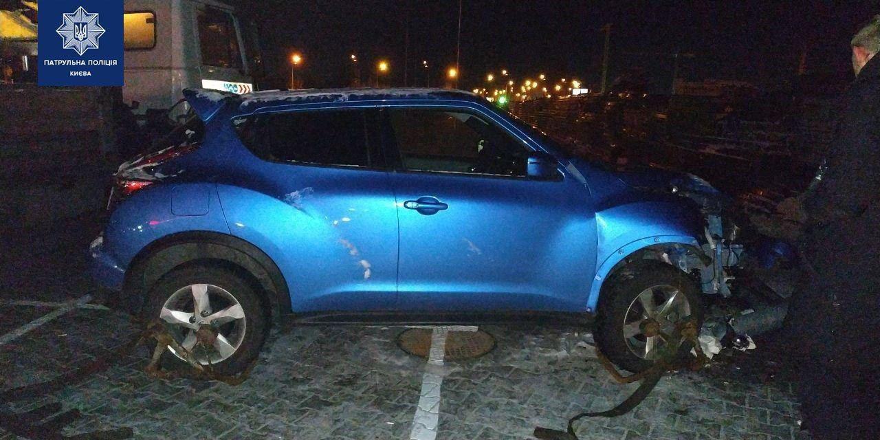 В новогоднюю ночь водитель Nissan Juke устроил дрифт на улице Степана Бандеры и врезался в фонарный столб.
