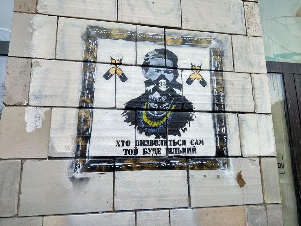 Рисунки, которые изображают известных украинских писателей в образе революционеров, были заново нанесены на прежних местах.