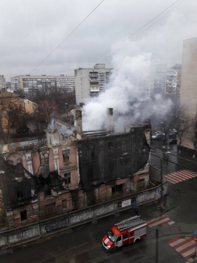 В Киеве вновь загорелся дом по адресу: улица Щекавицкой, 19/33, который является исторической памяткой.