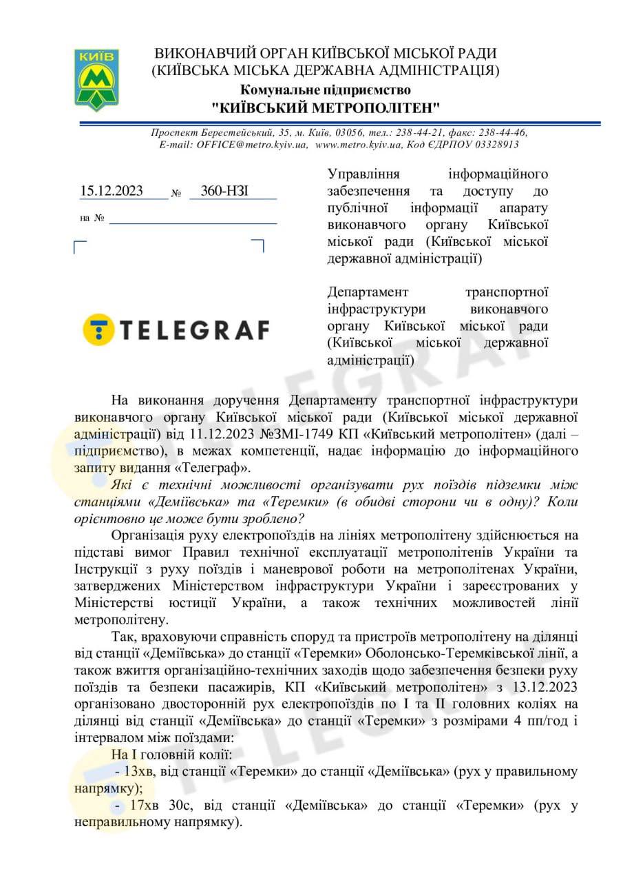 В киевском метро, где произошла разгерметизация между станциями "Лыбидская" и "Демеевская", может начаться ремонт и на другом участке. Речь идет об участке на "синей ветке" между "Почайной" и станцией "Тараса Шевченко".