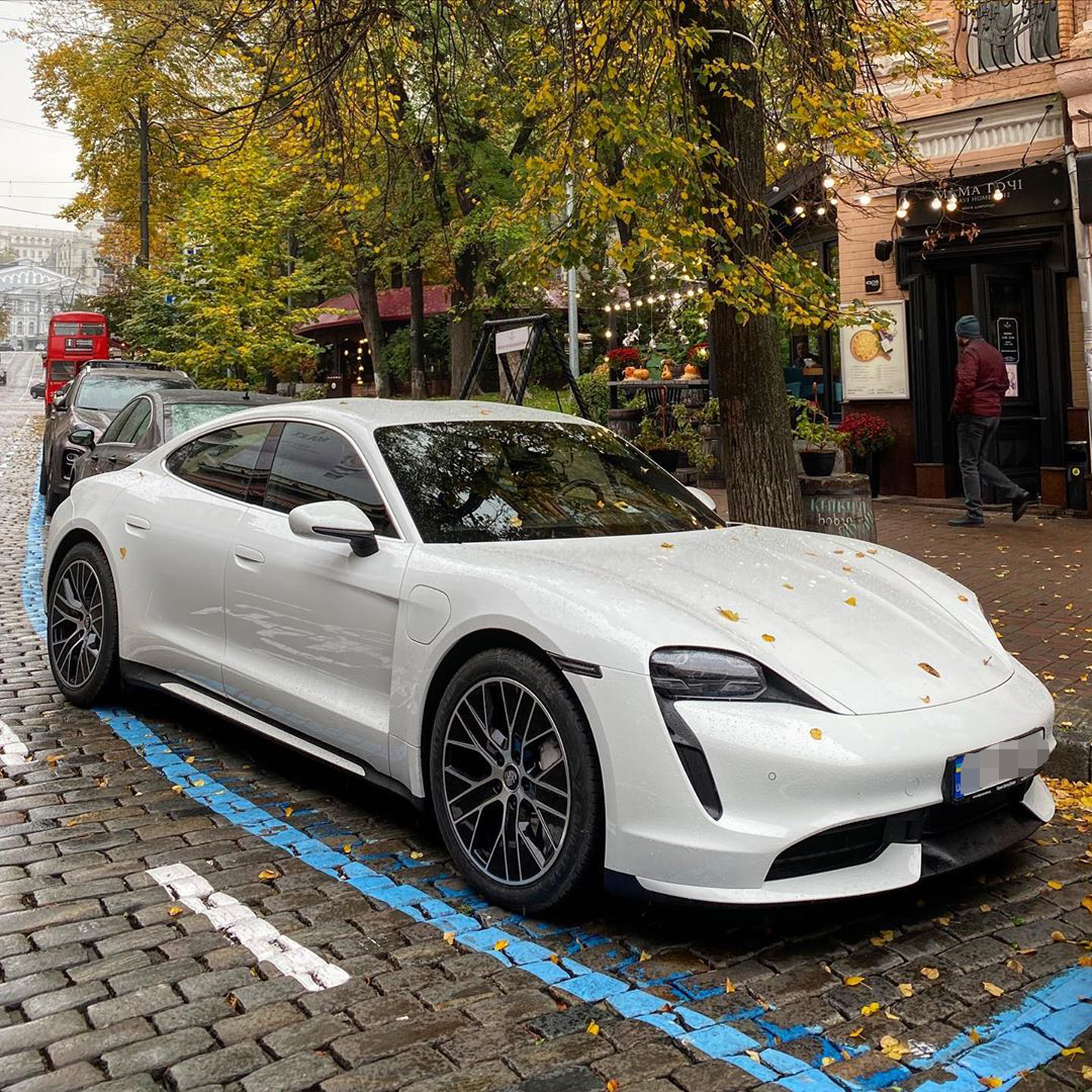 На улицах Киева заметили шикарный автомобиль Porsche Taycan Turbo.