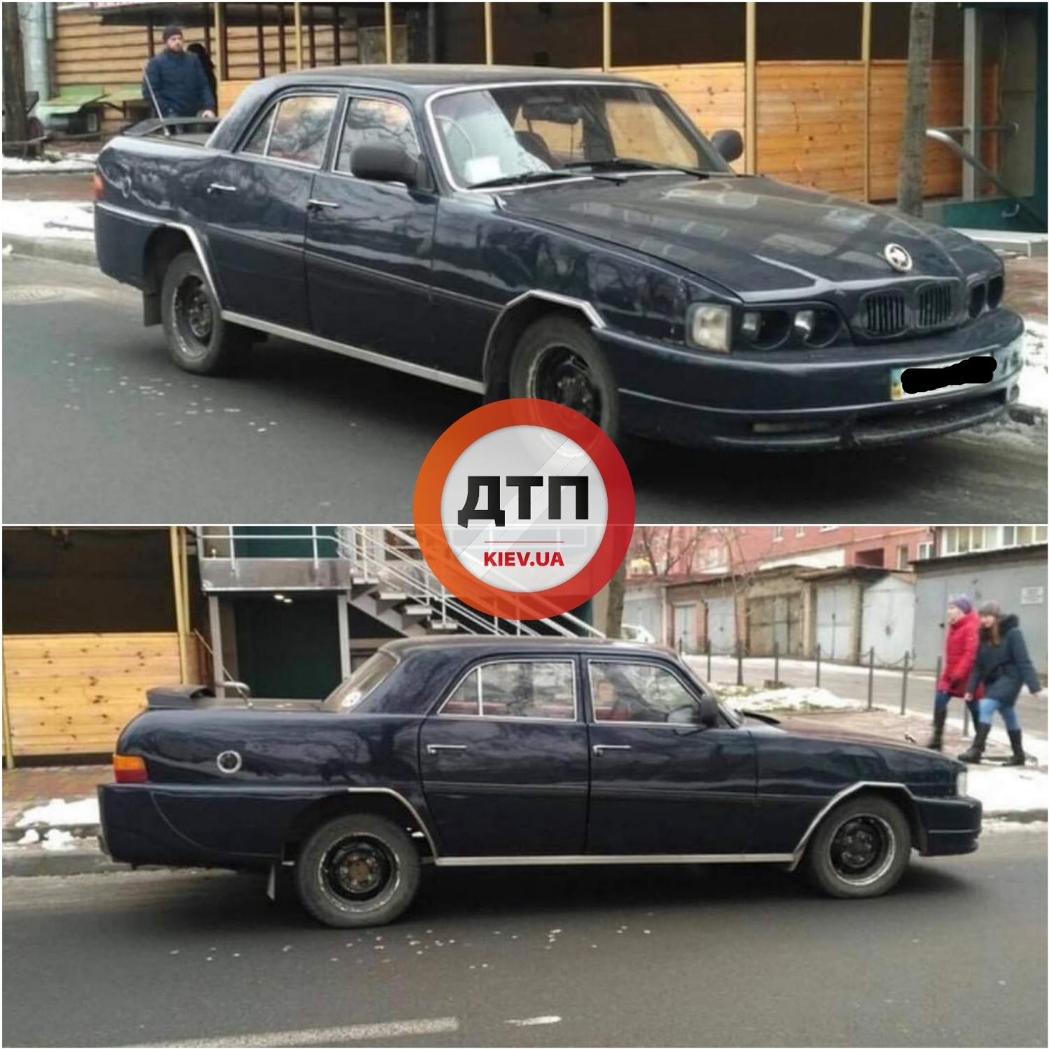 На улицах Киева заметили необычный "гибрид" автомобилей BMW и "Волга" на украинских номерах.