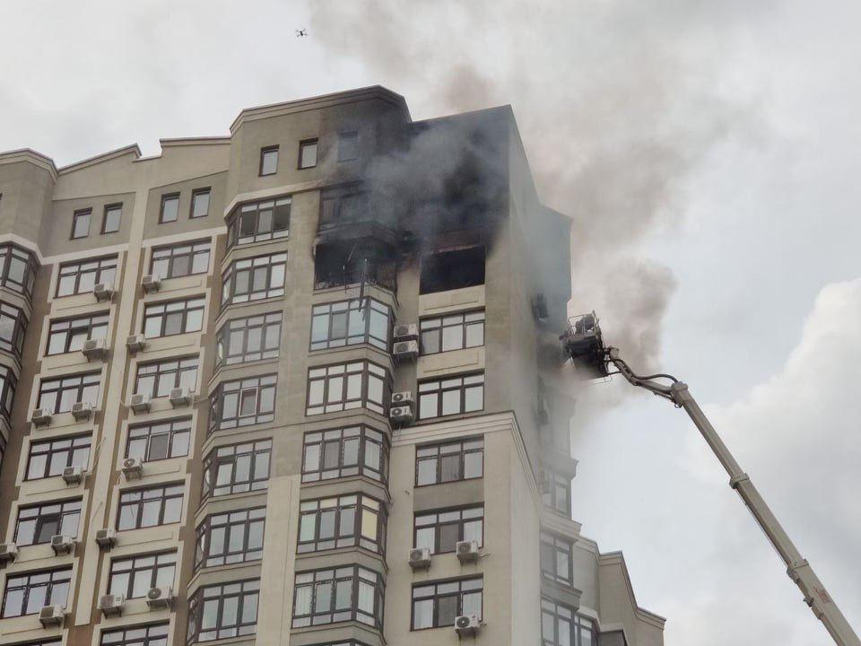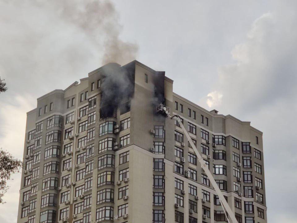 Спасателям удалось в 18:03 локализировать пожар в квартире на 24 этаже в высотке на ул. Сикорского, 4.