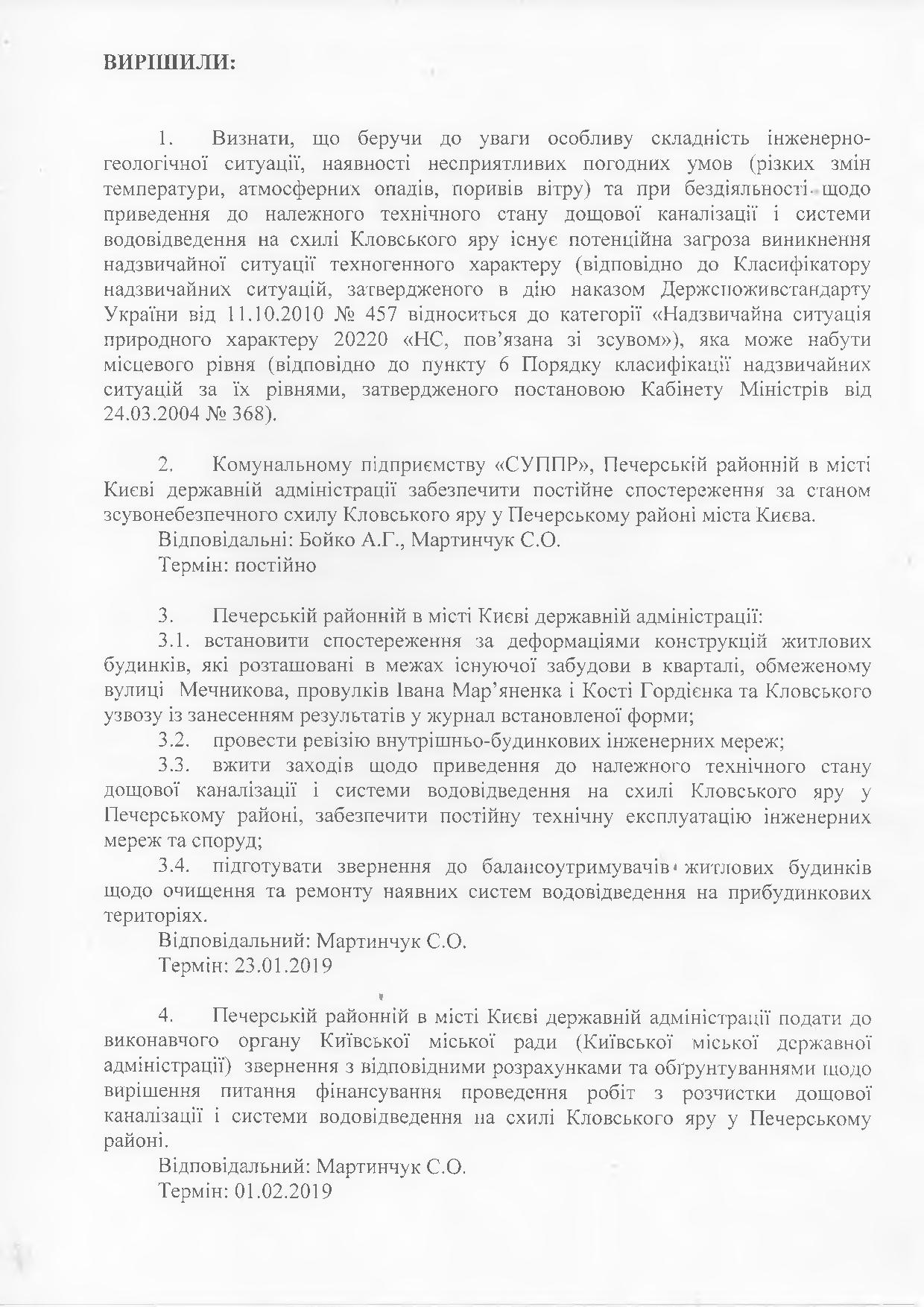 Чтобы не допустить катастрофы, комиссия приняла ряд шагов. В частности, обязал КП СУППР вести постоянное наблюдение за состоянием склона, а Печерскую РГА - за деформациями жилых домов.