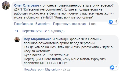 "Верните деньги за жетон", - "Странно, что пишут только про е-билет, жетоны тоже не помогли сегодня", "Кто понесет ответственность за это интересно? Кстати в Польше, если не работает, можно ехать бесплатно. Почему у вас все через *опу - можете обьяснить?", - пишут комментаторы.