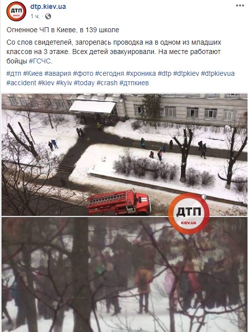 В Киеве, в школе №139 загорелась проводка на одном из этажей.