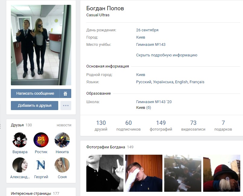 На данный момент профиль Богдана Попова доступен в социальной сети "ВКонтакте".