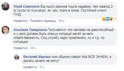 Мужчина имеет 2-ю группу инвалидности из-за заболеваний психики. Проживает в Киеве и стоит на учете у психиатра. Имеет мать, но живет от нее отдельно. Соседи говорят, что несколько дней назад от него ушла девушка, которая тоже была инвалидом по заболеваниям психики. Возможно, именно это и спровоцировало у мужчины обострение.