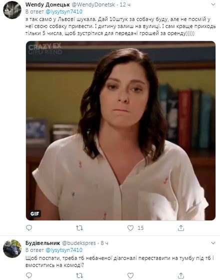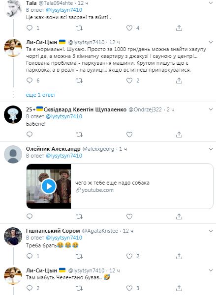 "Я так же во Львове искала. Дай 10 штук за собачью будку, но не посмей в нее свою собаку привести. И ребенка оставь на улице. И сам лучше приходи только 5 числа, чтобы встретиться для передачи денег за аренду", "О! Теперь я знаю, что такое стиль "итальяно" так до сих пор была деревня деревней", " но есть нормальные. Ищу. Просто за 1000 грн/день можно найти лачугу черте где, а можно 3 комнатную квартиру с джакузи и сауной в центре ... Главная проблема - парковка машины. Кругом пишут что есть парковка, а в реале - на улице... если успеешь припарковаться", - пишут в комментариях.