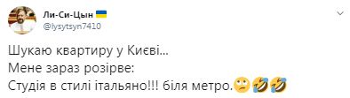"Ищу квартиру в Киеве ... Меня сейчас разорвет студия в стиле итальяно!!! возле метро", - написал автор.