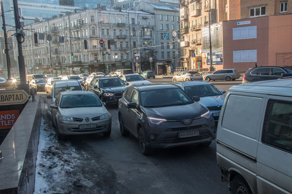 От улицы Эспланадной в сторону Бессарабской площади образовалась большая пробка. Обстоятельства ДТП устанавливаются.