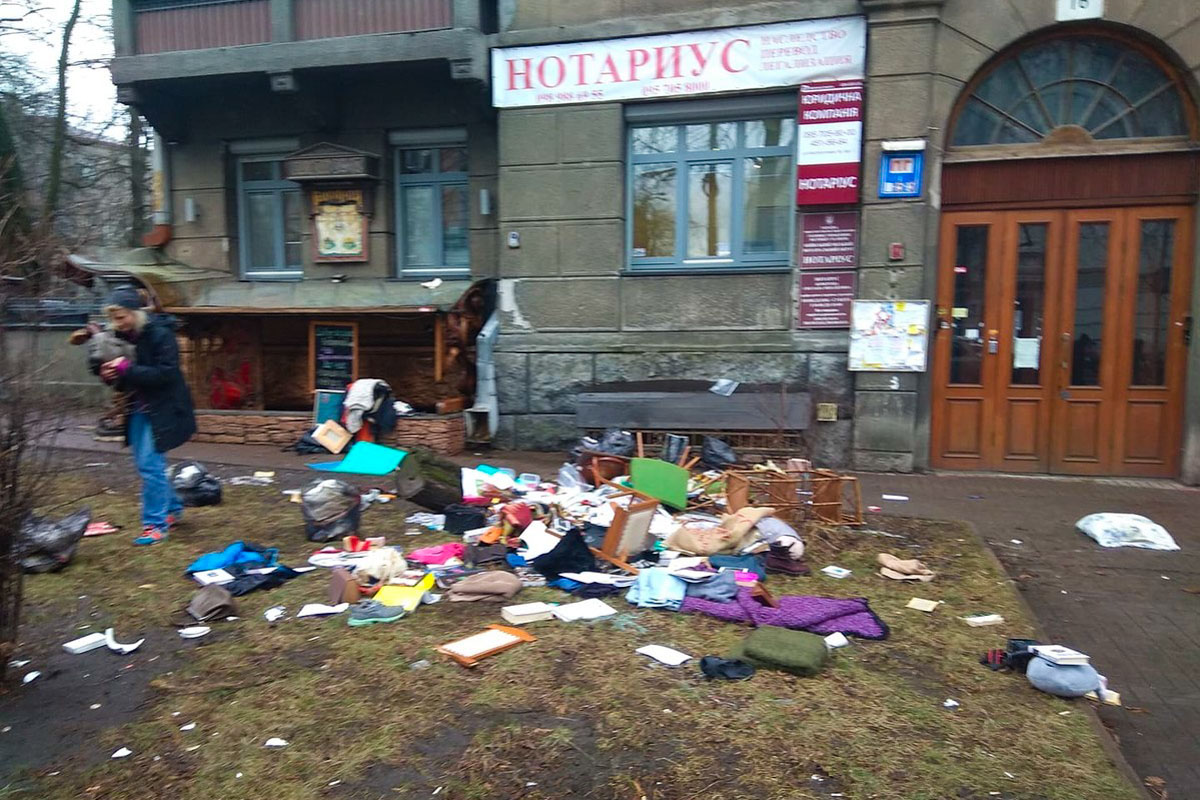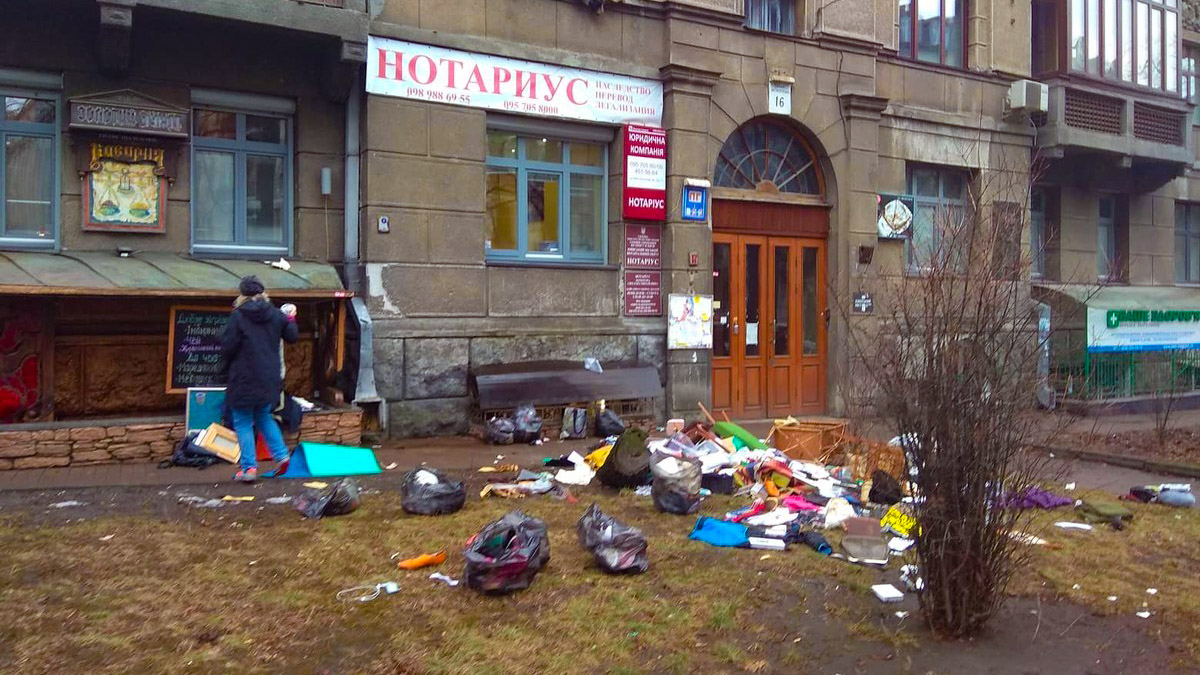 12 февраля на улице Институтской в Киеве прохожие стали свидетелями того, как из окна квартиры на их головы и на тротуар летят вещи