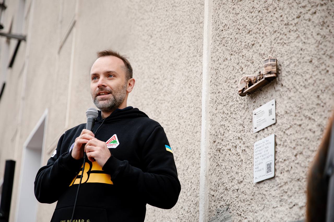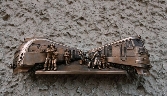 В частности, минискульптура изображает два поезда, прибывающих на первую платформу "железных ворот" Киева. Один из поездов прибывает с военными из Краматорска, другой – из-за границы.