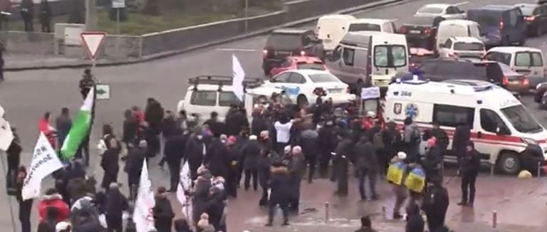 В Telegram-канале PavlovskyNEWS пишут, что из-за столкновения протестующих с полицией у одного из представителей ФЛП начались проблемы с сердцем. Его коллеги взяли мужчину под руки и передали медикам. Те на носилках занесли его в авто "скорой".