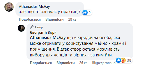 На практике это означает, что есть юридическое лицо, которое может получить в пользование имущество – храмы и помещения. Следовательно, создается возможность выбора для монахов и верующих - за кем идти, - пояснил спикер Священного Синода.