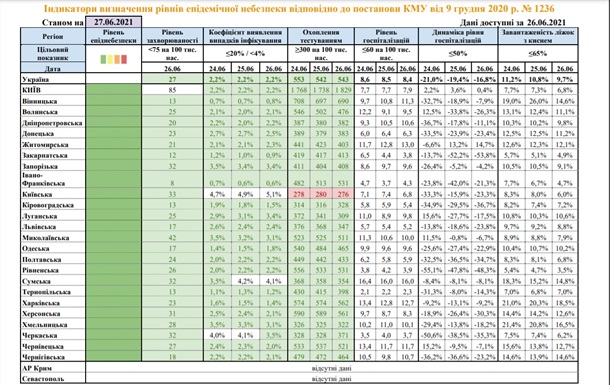 Об этом свидетельствуют данные об уровне эпидемиологической опасности Министерства здравоохранения, передает "Корреспондент".