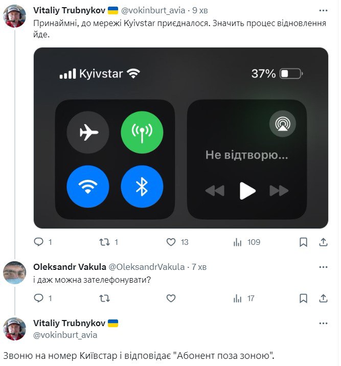 Сегодня вечером, 13 декабря, услуги связи мобильного оператора "Киевстар" после масштабной хакерской атаки, похоже, начали возобновляться.