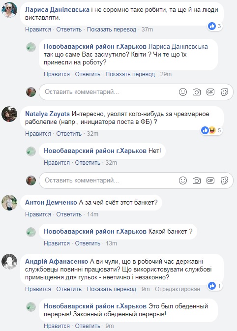 В комментариях пользователи довольно гневно отреагировали на такое поздравление главы администрации Новобаварского района Харькова. На их возмущение ответили с официальной страницы администрации и пользователь Нелли Цибульник, которая, судя по ее профилю, является дочкой Татьяны Цибульник.