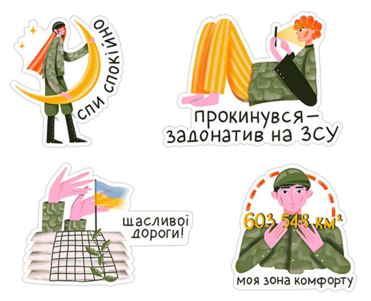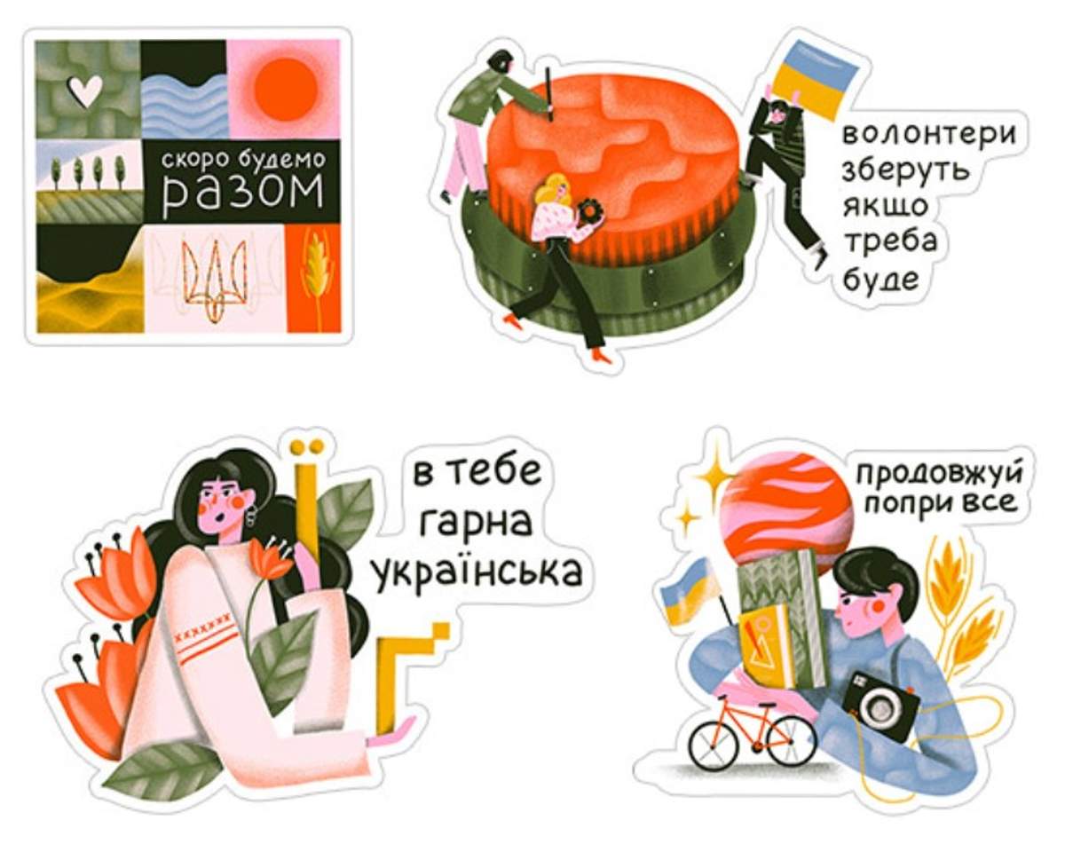 Стикеры были созданы вместе с украинской художницей-иллюстратором Мирославой Шевченко. В нем каждый украинец может увидеть себя - речь идет о: