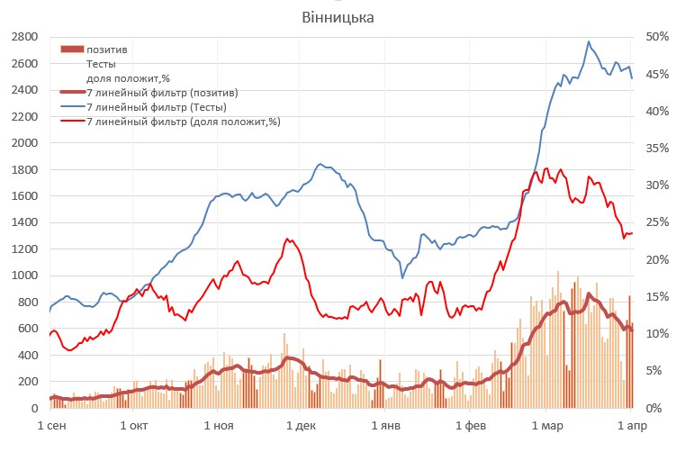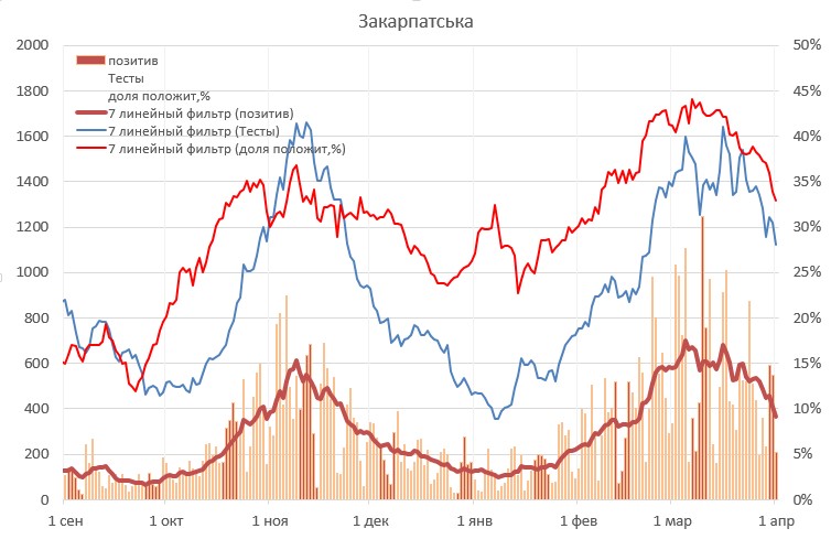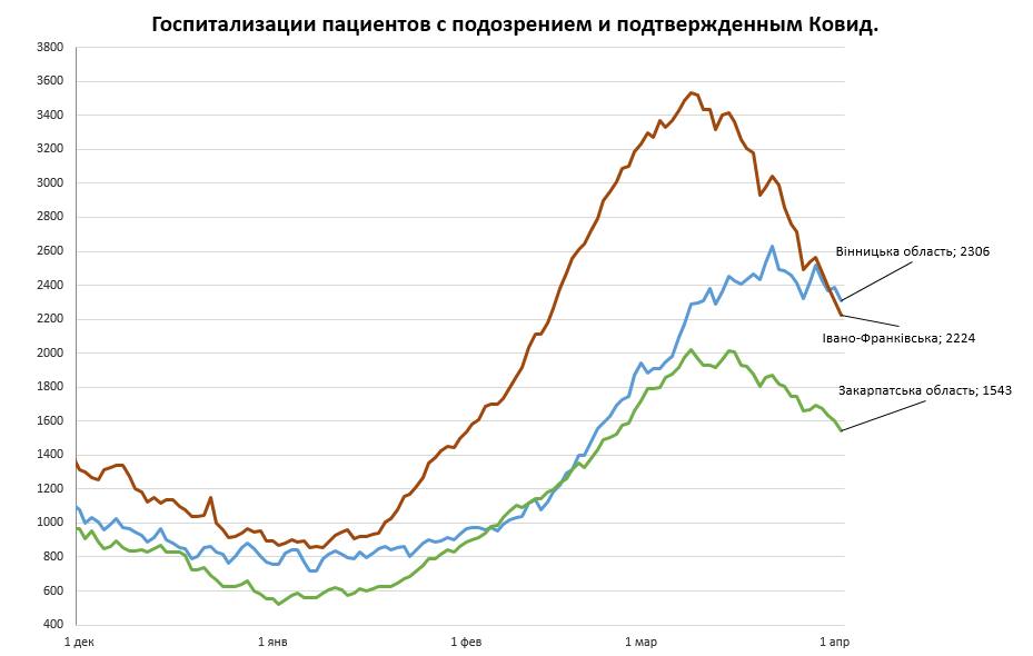 Истребин в качестве подтверждения своих слов опубликовал анализ по трем областям Украины, где уже были зафиксированы подобные "максимумы" по госпитализации.