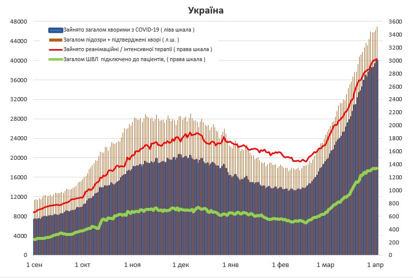 На период с 5 по 12 апреля в Украине ожидается пик госпитализаций пациентов с подтвержденным COVID-19.