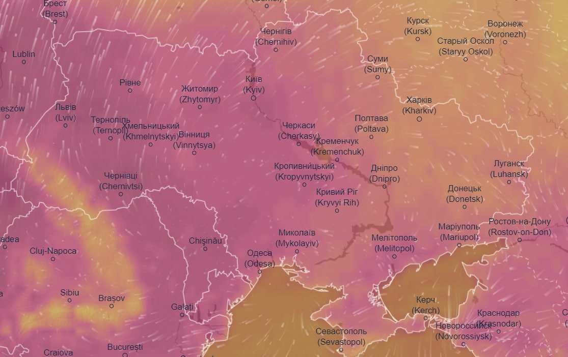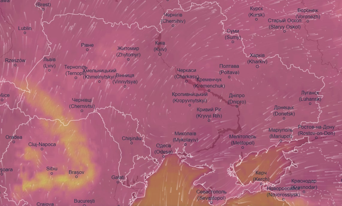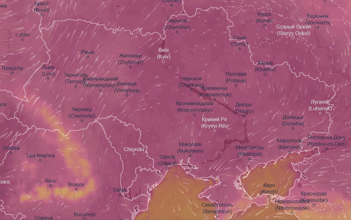 Об этом сообщает "Апостроф" со ссылкой на данные погодного радара Ventusky.