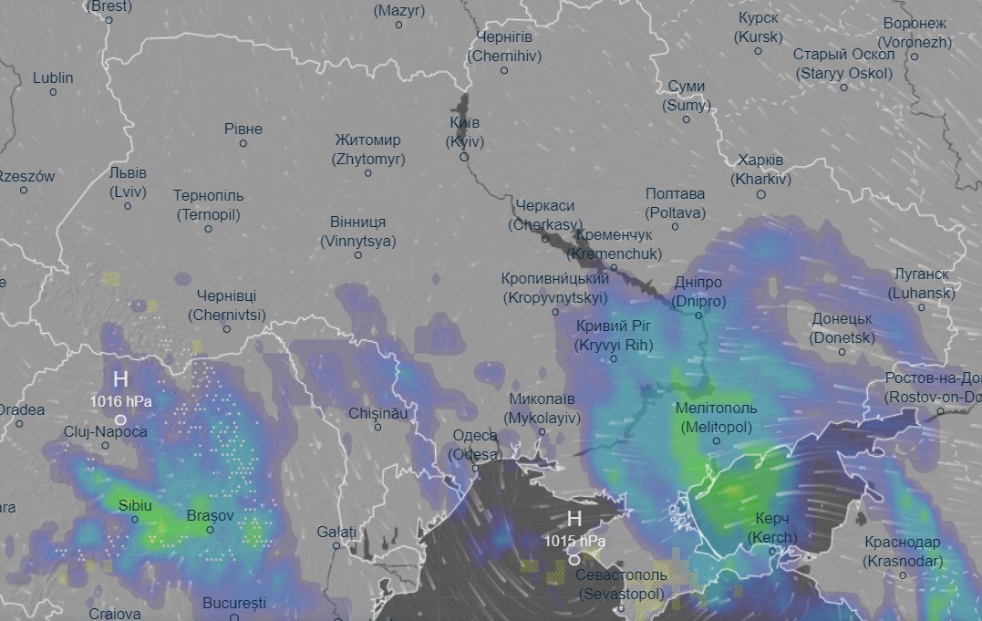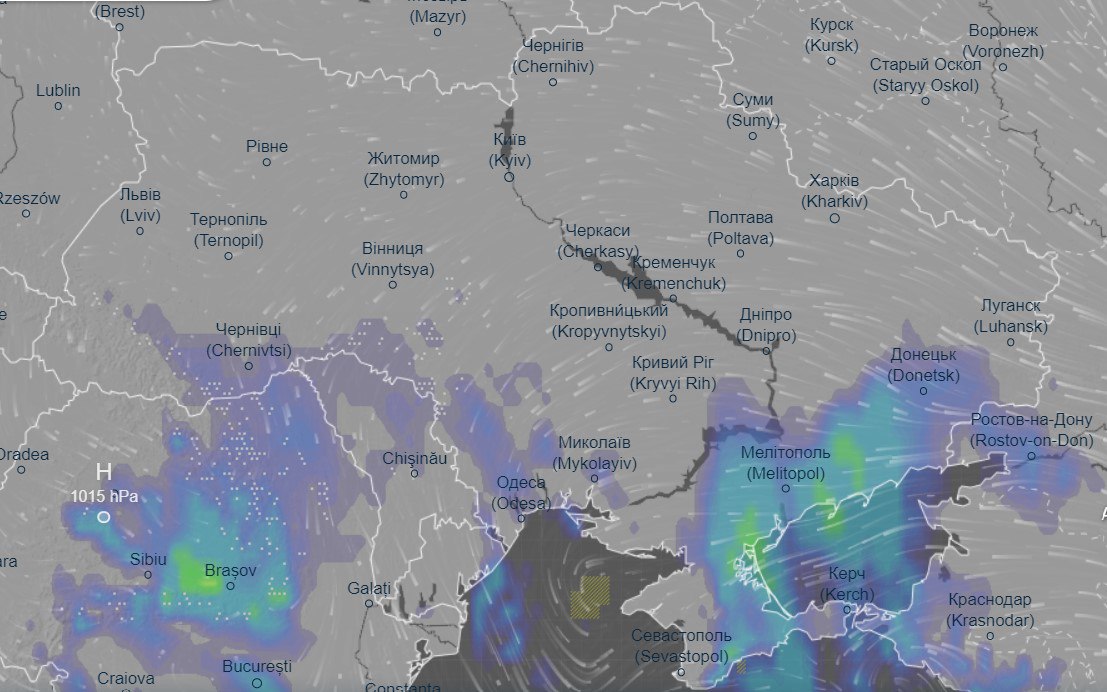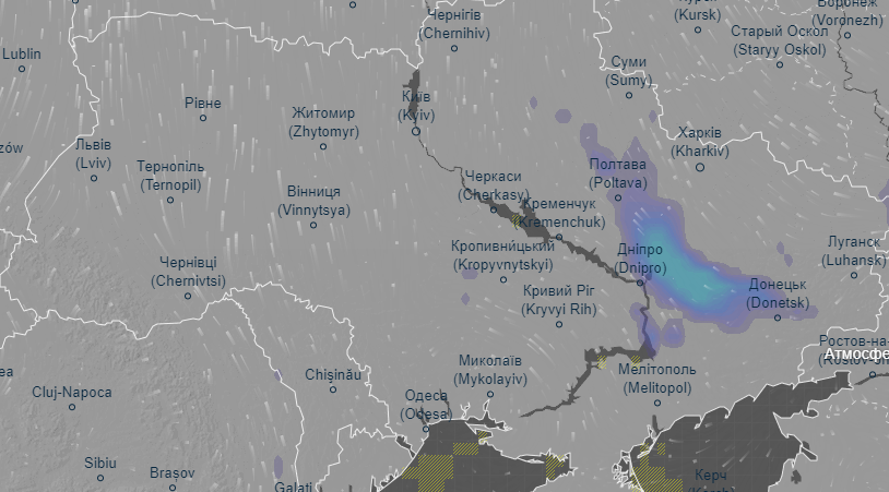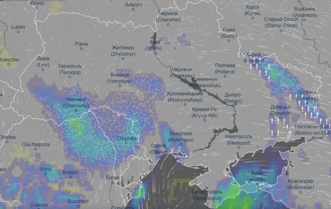 Почти такая же картина будет наблюдаться в течение всего дня, хотя снежный фронт будет перемещаться на южную сторону страны, захватив Мелитополь и Днепропетровскую область.