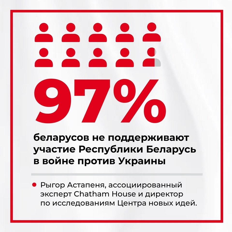 Количество беларусов, которые не поддерживают участие РБ в войне против Украины, выросло до 97%.