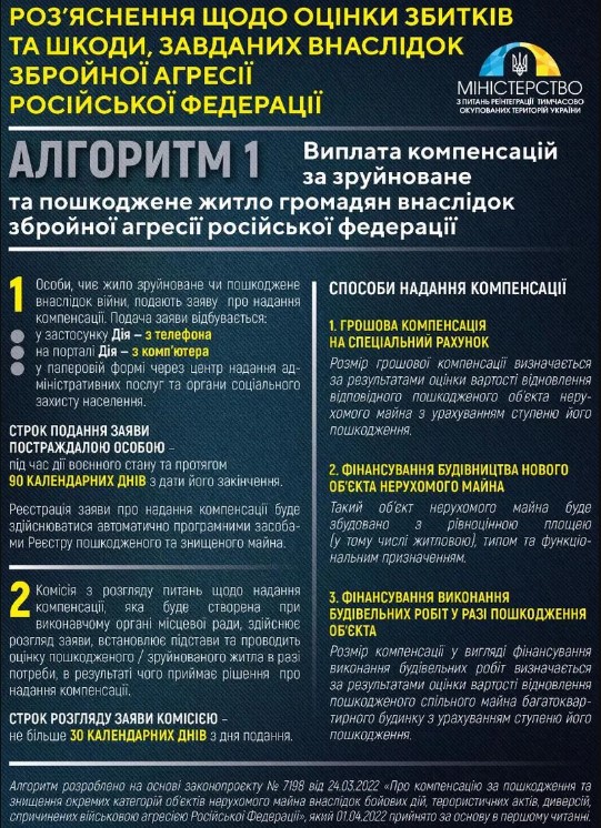 Соответствующее решение поддержал Кабмин. Изначально компенсация была положена гражданам, которые потеряли жилье с начала полномасштабного вторжения России.